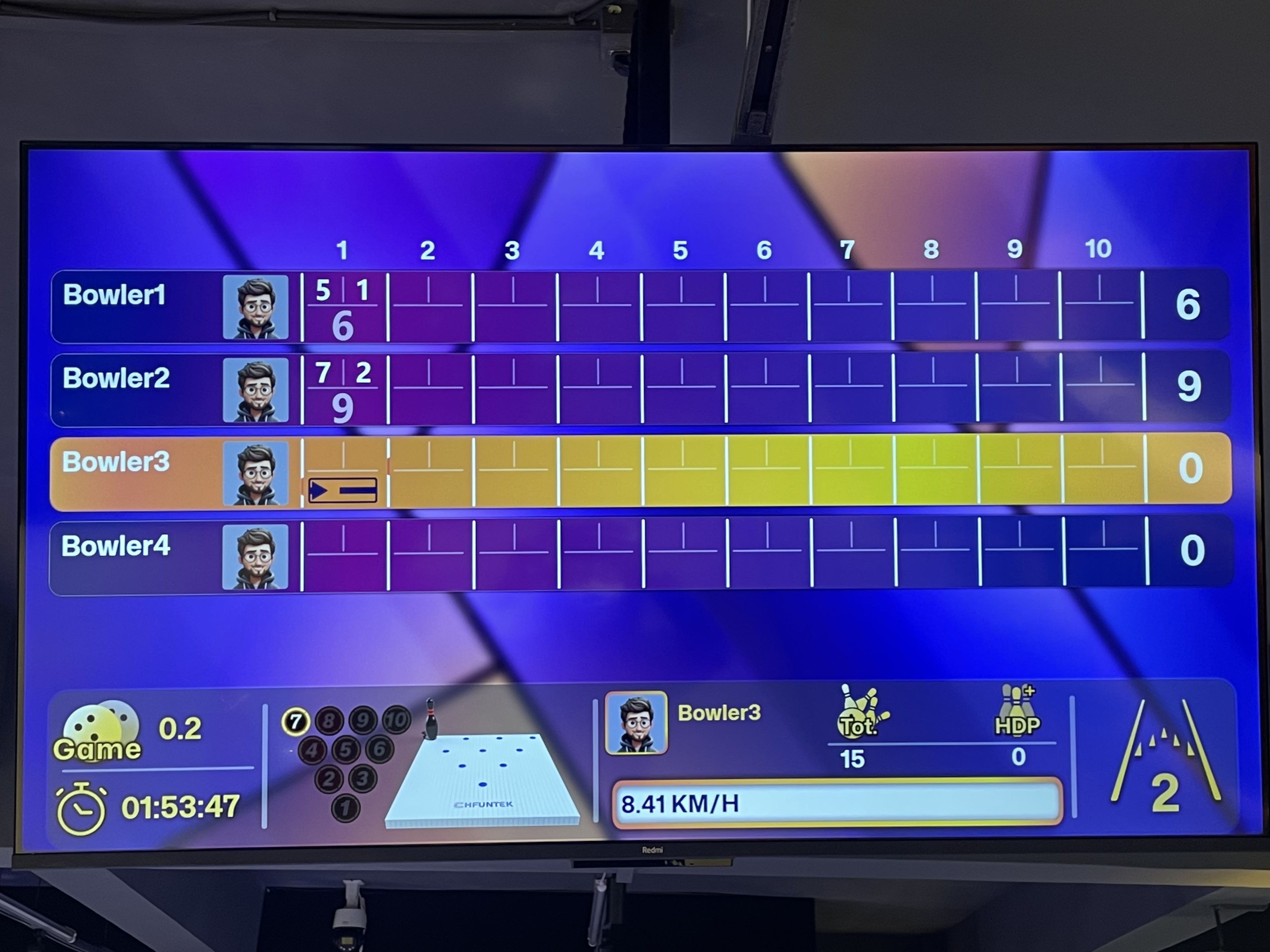 Many bar customers are not serious bowlers. A friendly, game-like UI makes bowling feel less like a sport and more like entertainment—perfect for casual visitors.