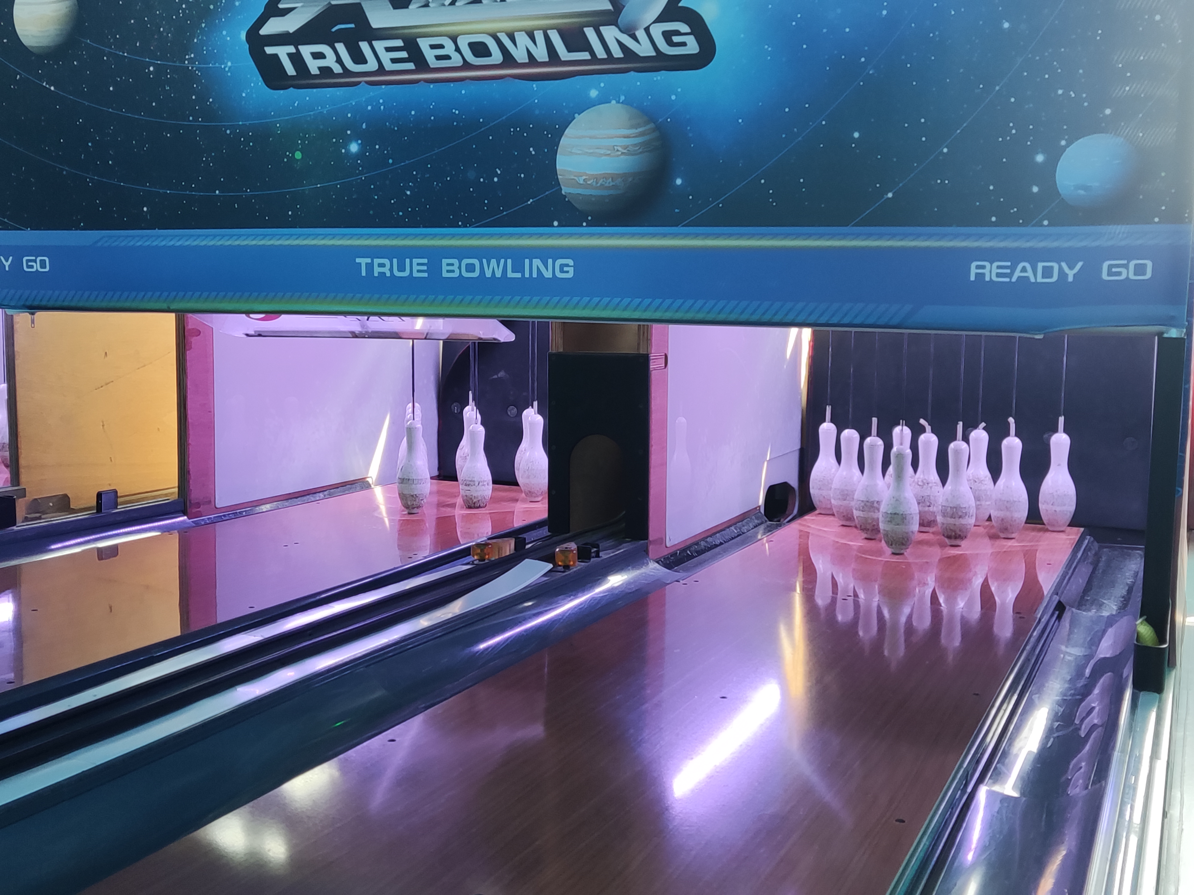 Unlike many arcade games where players take turns individually, mini bowling: