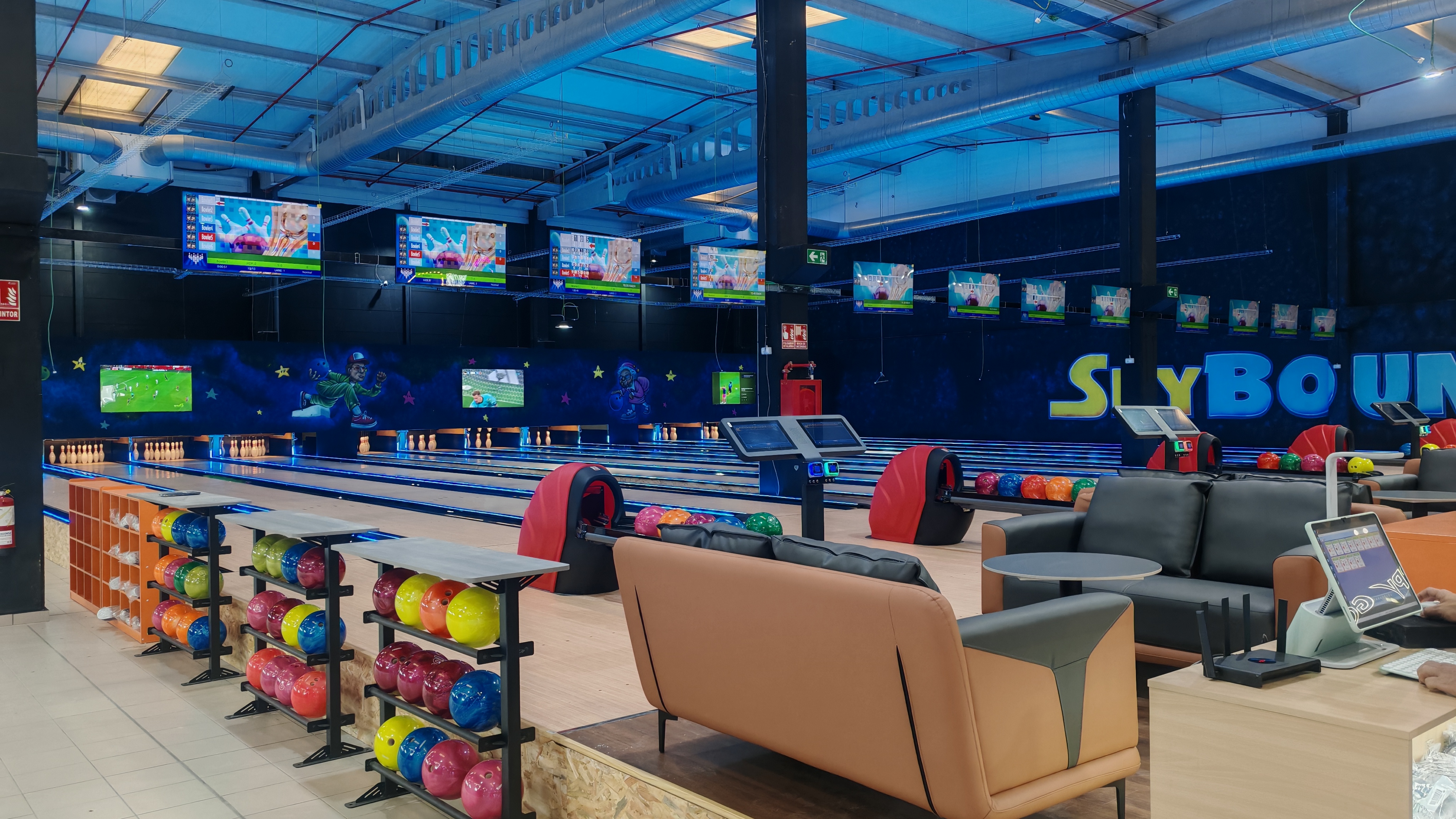 Here is the largest sport entertainment center with 4,000 square meters in Cantabria. Among all equipments, the biggest star of course is our 12 lanes grand bowling alley. Inside has Trampoline, Cube Climbing, indoor playground, and some sport machines, claw machines, canteen, and so on.